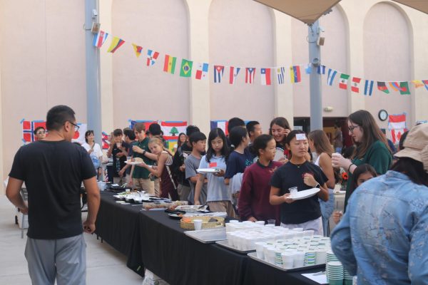 Setting up for such a large-scale event was meticulous work, but the student and parent volunteers brought the potluck to life. Ms. Shearer and Ms. Chan led an army of student volunteers who arrived early and many parent volunteers, to hang flags, set up tables, and handle any other last-minute details. The parent volunteers also helped organize the reception table, manage the very hungry crowd, and stayed late to help clean up. “MANY THANKS to our Bishop’s Global Village of Parent Volunteers,” Dr. Moseley wrote in an email after the event.