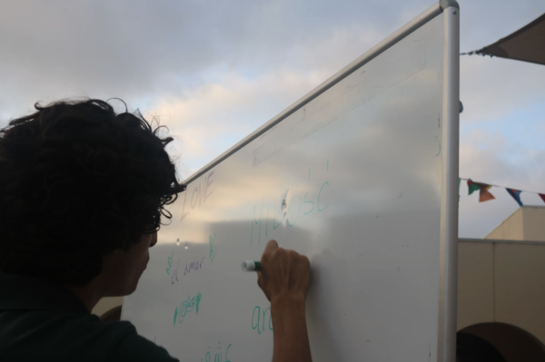 Ms. Shearer gave the theme of globalization a visual form: a whiteboard close to the reception scribbled with this school year’s value of “justice” in dozens of different languages. “I asked people today to write [‘justice’] in their language on the whiteboard and teach somebody their language,” she explained. For her, the whiteboard captured the purpose of the event: “Language can sometimes be a barrier to people communicating, but food is a universal language. We can all share our food and get a little bit of a sense of each other’s culture.”